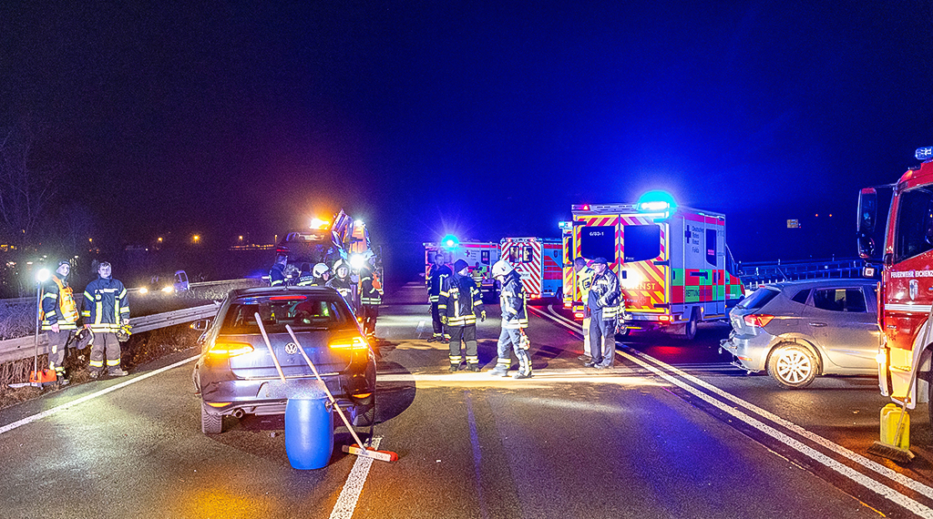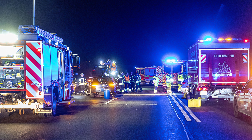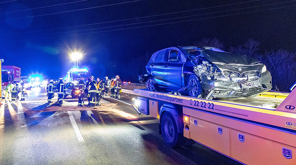 Großalarm für die Einsatzkräfte: Neben mehreren Feuerwehrkräften waren insgesamt zehn Rettungswagen sowie zwei Streifenwagen der Polizei im Einsatz. Für die Dauer der Unfallaufnahme und der Bergungsarbeiten musste die Fahrbahn vollständig gesperrt werden. Die Vollsperrung konnte erst um 19.19 Uhr wieder aufgehoben werden.