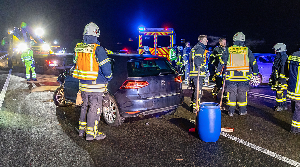 Blaulicht am zweiten Weihnachtsfeiertag: Am Freitag gegen 17.30 Uhr kam es auf der A7 in Fahrtrichtung Norden, auf Höhe der Anschlussstelle Fulda Mitte, zu einem schweren Verkehrsunfall mit mehreren beteiligten Fahrzeugen. Insgesamt acht Menschen wurden dabei leicht verletzt.
