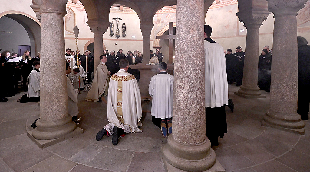 Die musikalische Gestaltung übernimmt der Domchor unter der Leitung von Domkapellmeister Franz-Peter Huber. An der Orgel spielt Domorganist Max Deisenroth. Nach der Eucharistiefeier zieht eine Prozession mit dem Allerheiligsten zur Michaelskirche. Dort folgt eine kurze Andacht, anschließend bleibt Zeit. Zeit für Stille. Zeit, vielleicht, für eine Berührung. +++ red.