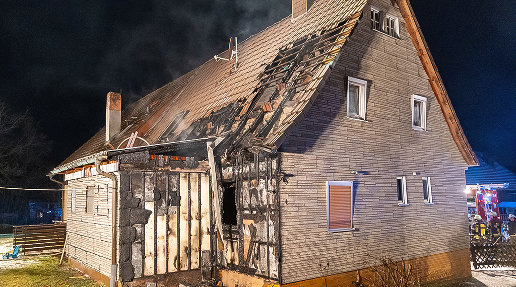 In der Nacht zum Samstag ist es gegen 1.45 Uhr zu einem Wohnhausbrand im Schlitzer Stadtteil Bernshausen gekommen. Nach dem derzeitigen Stand der polizeilichen Ermittlungen geriet zunächst aus bislang unbekannter Ursache eine unmittelbar an dem Wohnhaus stehende Mülltonne in Brand. Von dort griff das Feuer auf das Gebäude über und breitete sich weiter aus.